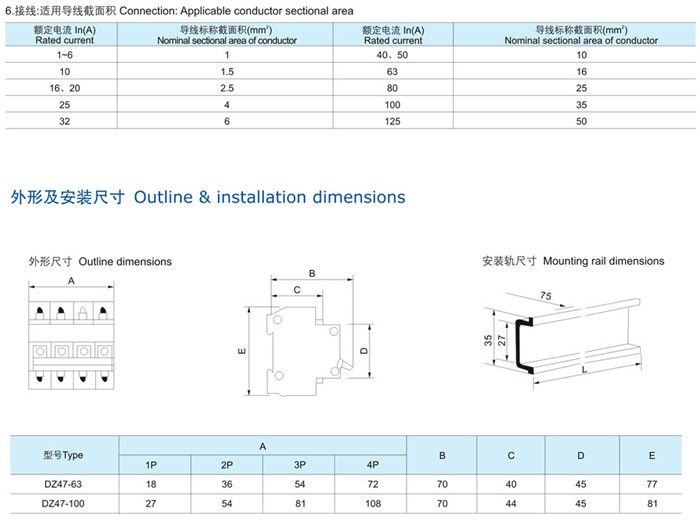 DZ47-100係列高(gāo)分斷小(xiǎo)型(xíng)斷路器(qì)適用於交流(liú)50Hz或60Hz,額定工作電壓為單相230V三相(xiàng)400V及以下,額定電流1~100A的照明配電係統或電機配電係統線路的(de)短路過載保(bǎo)護,具有(yǒu)隔離功能,適用於建築(zhù)行業分配(pèi)電(diàn)。同時也可在正常情況下不頻繁地通斷電器(qì)裝置和照明線路。