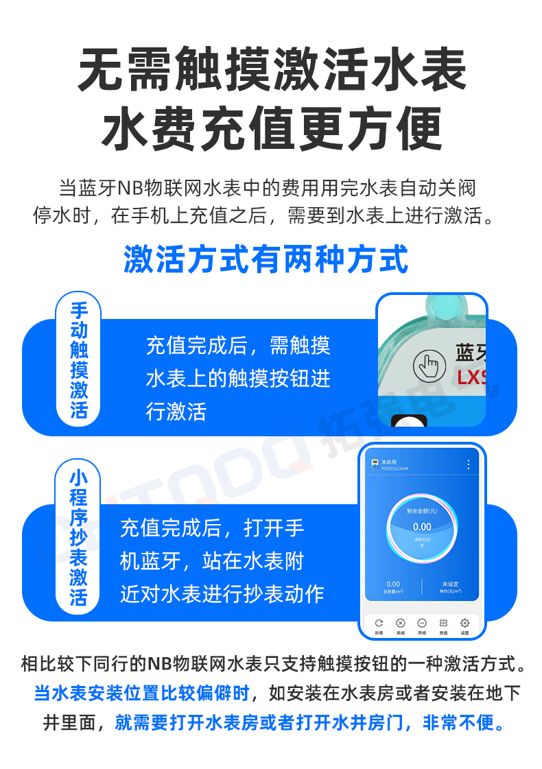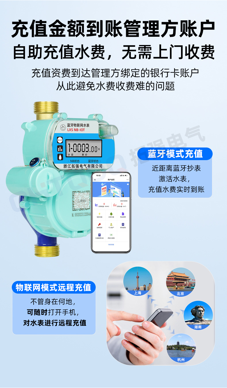 NB-IoT/4G物聯網無線遠傳水表是.17c嫩嫩草色视频蜜 %A自主(zhǔ)研製的一款用於遠程(chéng)抄表及閥(fá)控的智能預(yù)付費水表。它通過窄帶物聯(lián)網(Narrow Band Internet of Things, NB-IoT)與服(fú)務器進(jìn)行(háng)遠程通訊,無(wú)需(xū)使用采集器或集中器設備,采用一(yī)表一流(liú)量卡的點到點連接方式,簡化了設備安(ān)裝工作,實現了對水表使用(yòng)量的自(zì)動遠程抄表,並有效的避免了(le)管理部門上門抄表的人力工(gōng)作。該水表具備閥門(mén)控製功(gōng)能,可(kě)方便管理部門對水表的用水情況進行控製,使得遠程抄表及控(kòng)製變的便捷、可靠,在節(jiē)約人力、物力和財力(lì)的同時,有效提高了(le)生產(chǎn)效益(yì)。