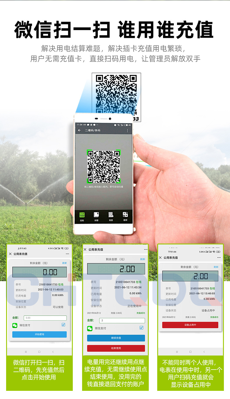 三相掃(sǎo)碼充值公用電表(充電樁/灌溉)