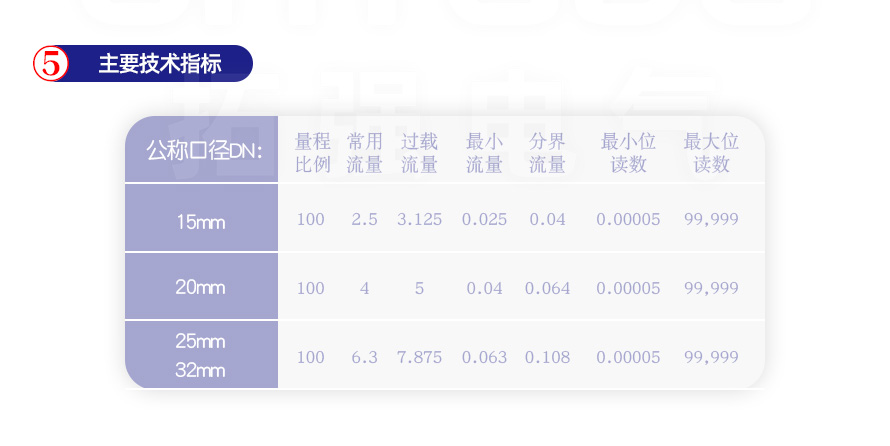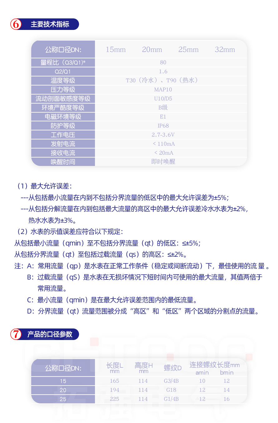 ---從包括分解流量在(zài)內到包括(kuò)最大(dà)流量的高區中的最大(dà)允許誤差冷(lěng)水水表(biǎo)為±2%,熱水水表為±3%。