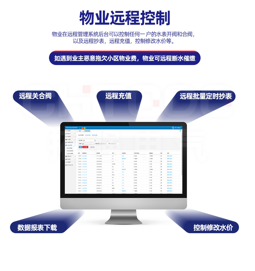 -遠傳遠控水(shuǐ)表,可通過係統軟(ruǎn)件實現預付費功能(néng),開/關閥操作。