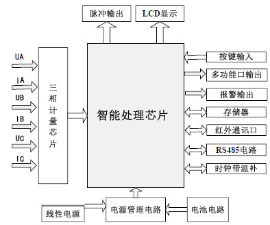 DTSD6607型電子式三相智能電能表工作原理如圖1所(suǒ)示(shì):